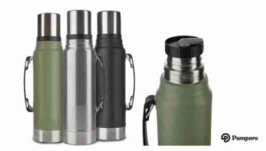 Termo de acero inoxidable 304, recubierto con esmalte especial que protege de ralladuras y golpes. Puede mantener el contenido a la misma temperatura durante 18hs, gracias a su doble pared aislante especial de acero. Cuenta con un tapón cebador Hermético a rosca con la función anti derrame y tapa con superficie plana estable para usar como taza o vaso y manija plegable para facilitar el transporte. Capacidad 1,1 litros