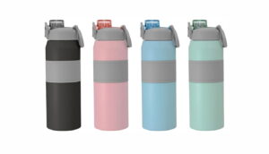 Térmica.otella deportiva con doble pared, sellada al vacío. Interior de acero 304 y exterior de acero 201. Pintura powder coat (pintura más duradera y resistente a la corrosión y el paso del tiempo). Tapa plástica a rosca en color gris con anillo de silicona y manija plástica para su agarre, combinada con tapa rebatible en colores translucidos a juego con el color de la botella. Boquilla con sorbete incluido. Grip de silicona color gris para mejor agarre.