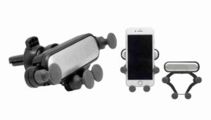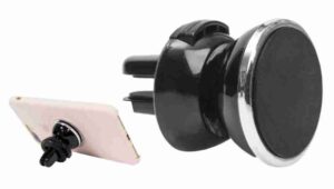 Soporte magnético para celular. El adaptador se incorpora a la rejilla del aire acondicionado del auto y se adapta a cualquier tamaño. La sujeción del celular es por medio de imán, solo se debe colocar una placa de metal en el celular. En la placa de metal es donde se aplica el logo. Medida Ø 3 x 5 cm.