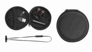 Auriculares bluetooth. Cable de 70 cm aprox. Botones para aumentar / disminuir el volumen, aceptar y rechazar una llamada. Los audifonos son imantados. En uno de los costados entrada mini usb para recargar la batería. Estuche redondo de Eva Pouch. Incluye repuestos para los audífonos.