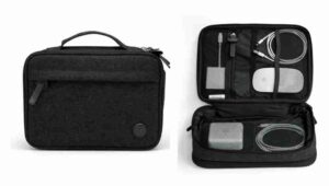 Poliéster, Nylon y Cuero ecológico. U TECH. Práctico portacables y porta accesorios con dos compartimentos acolchados individuales y divisiones internas. Cuenta con un bolsillo delantero, espacio para guardar tablet y manija de agarre para transportar. Medida 26 x 19,1 x 5,6 cm.