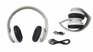Auriculares bluetooth. Libertad de movimiento con excelente calidad de sonido. Son plegables, tienen micrófono incorporado para atender llamadas, entrada auxiliar para cable con plugin de 3,5 mm que permite su uso cuando se acaba la batería y vienen en un práctico estuche de guardado. Incluye cable de audio con plugin 3,5 mm y cable de carga USB.