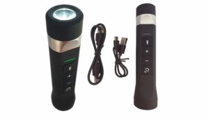 Parlante amplificador de 5W bluetooth con radio FM con scanner automático. Hasta diez metros de rango efectivo. Batería de litio recargable 3.7 V(1200 mAh)por cable USB provisto, tiempo estimado de funcionamiento 3 a 4hs aprox. Botón de encendido con indicaciones de conexión sonoras y de luz. Micrófono incorporado para función manos libres y teclas para control de volumen y selecciones. Lector de tarjeta micro SD (hasta 32G) y entrada USB para pendrives.